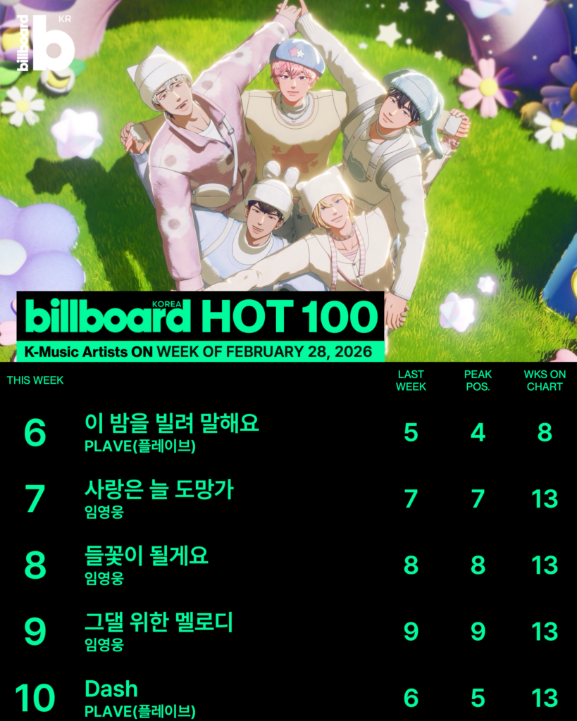 플레이브의 장기 집권이 계속되고 있다. 플레이브의 “BBUU!”는 11주 연속 1위 자리를 지키며 장기 흥행 신화를 쓰고 있다.