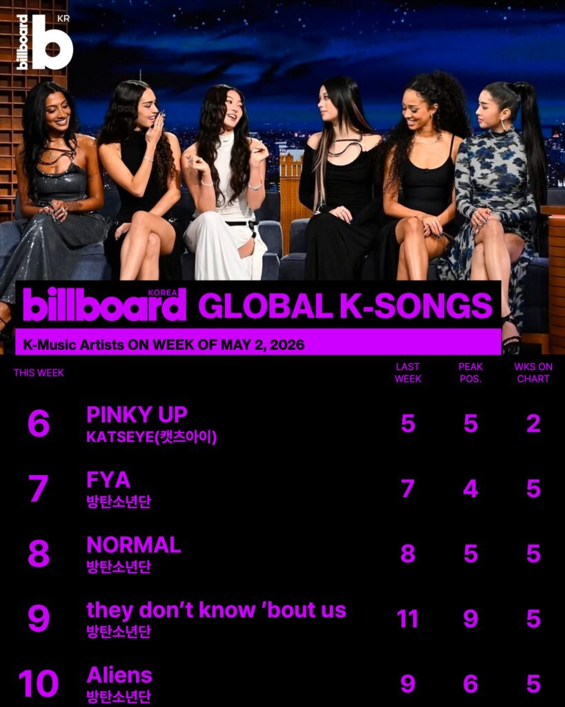 5월 2일 빌보드 차트 내 K-팝 한눈에 보기