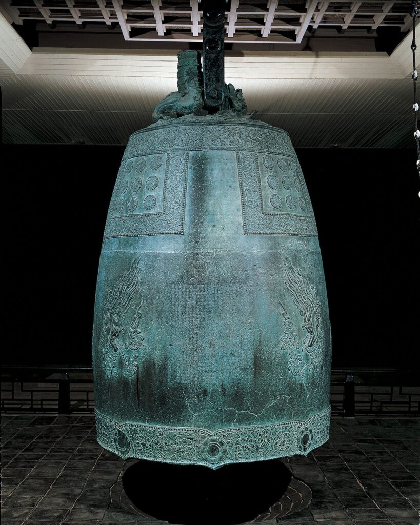 성덕대왕신종은 높이 약 365.8㎝에 달하는 대형 범종으로, 보상당초무늬와 연꽃 문양, 유곽과 당좌 등 정교한 장식으로 유명하다. 특히 종 중앙에 새겨진 ‘공양자상’은 향로를 받쳐 든 채 구름 위를 유영하는 천상의 존재를 형상화한 조각으로, 섬세하게 흘러내리는 옷자락과 경건한 자태가 특징이다.