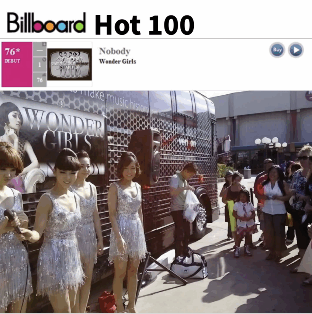 원더걸스의 국내 인기가 정점이었던 2009년, 일찌감치 미국 시장을 공략하기 위해 애썼으며 당시 원더걸스는 '조나스 브라더스' 북미 투어 공연 오프닝 게스트로 10회 넘게 오르는 등 본격적으로 이름을 알렸다. 이런 노력에 힘입어 "Nobody"의 영어 버전은 빌보드 핫 100에 76위로 진입하는 성과를 냈으나 아쉽게도 그 다음 주 바로 차트에서 밀려났다.