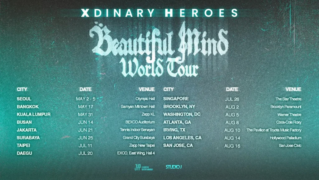 올해 밴드 ‘뮤즈(Muse)’ 내한공연 오프닝 무대에 오르며 존재감을 공고히 한 엑스디너리 히어로즈(Xdinary Heroes). 이들이 11월 21일부터 31일까지 서울 잠실실내체육관에서 월드투어 ‘Beautiful Mind’를 마무리한다. 국내외 14개 지역, 총 18회 공연으로 진행된 월드투어의 대미이자, 밴드가 올림픽홀과 핸드볼경기장을 넘어 잠실실내체육관까지 입성하는 성장의 이정표다. 7월에는 ‘롤라팔루자 시카고’ 무대에 섰고, 8월에는 미주 6개 도시 단독 공연을 성황리에 마무리한 바 있다. ‘2025 부산국제록페스티벌’에도 출연해 ‘공연 강자’다운 에너지를 보여주며 무대 위에서의 경험치를 단단히 쌓아왔다. 여러 무대에 오르며 더더욱 농익은 이들이 더욱 이번 피날레 무대에 또 어떤 공연 강자로서의 모습을 보여줄 지 기대된다.