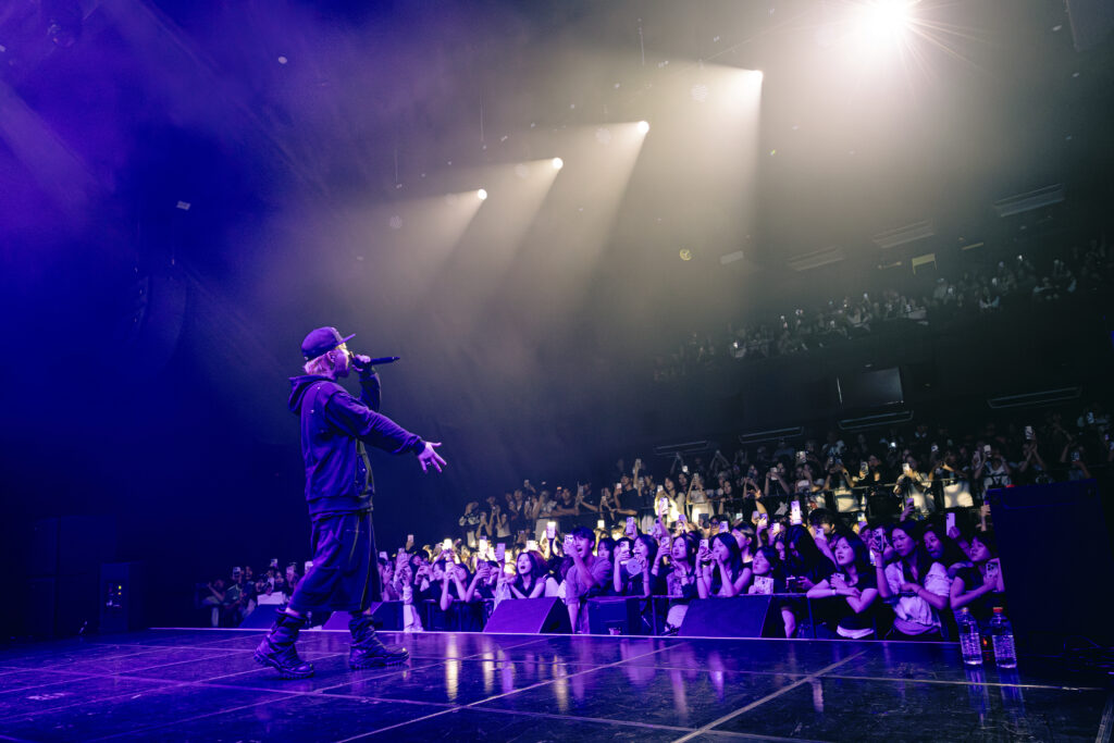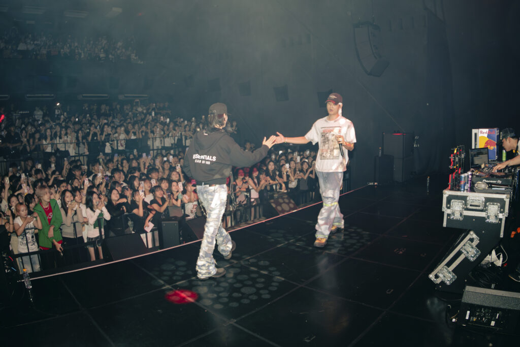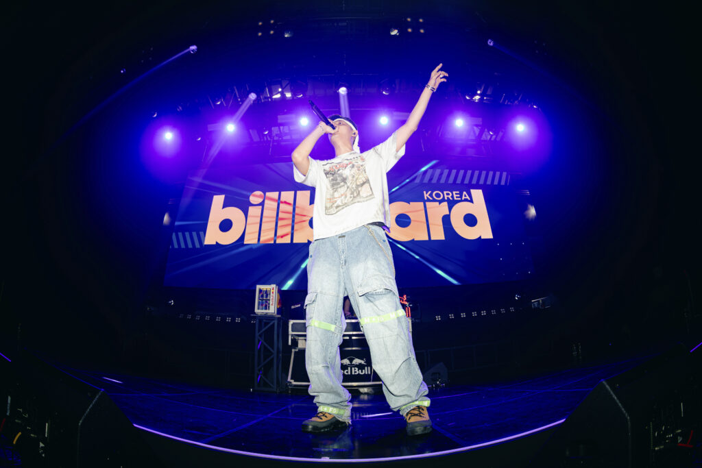 무대의 열기는 블라세 차례에서 절정에 달했다. “Peace Out”으로 등장한 그는 쇼미더머니 준우승자다운 포스로 무대를 압도했고, 일본 모델 출신 래퍼 JIRO가 합류하며 한층 신선한 무대를 완성했다. 이어 공연 당일 발매를 앞둔 앨범 ‘SELF MADE’를 언급하며 “나가는 길에 꼭 들어달라”는 메시지를 전한 그는, 쇼미더머니에서 선보였던 무대까지 재현하며 관객들의 뜨거운 호응을 끌어냈다. 마지막 곡은 신보 타이틀곡에 피처링으로 참여한 플리키뱅과 함께하며 자연스럽게 다음 무대로 바통을 넘겼다.