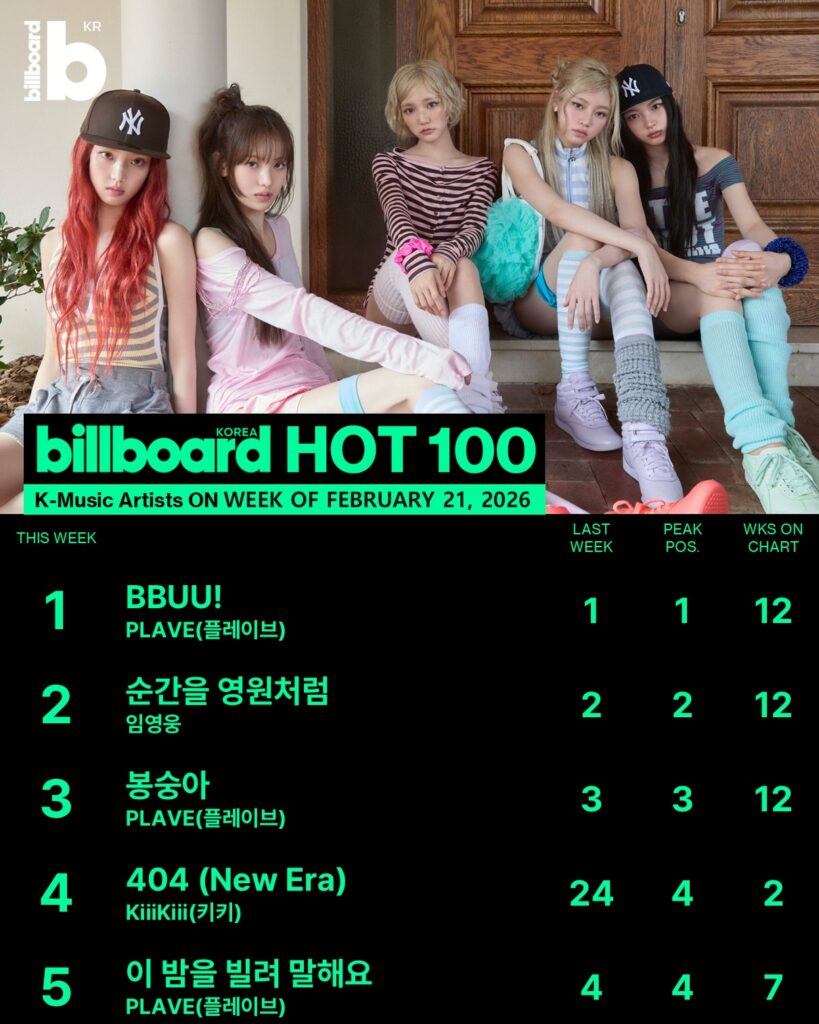 블랙핑크의 컴백을 앞두고 선공개곡 “뛰어(JUMP)”는 7위에 올랐으며 키키의 자유로운 에너지와 특유의 젠지미를 담은 “404 (New Era)”는 9위에 올랐다.