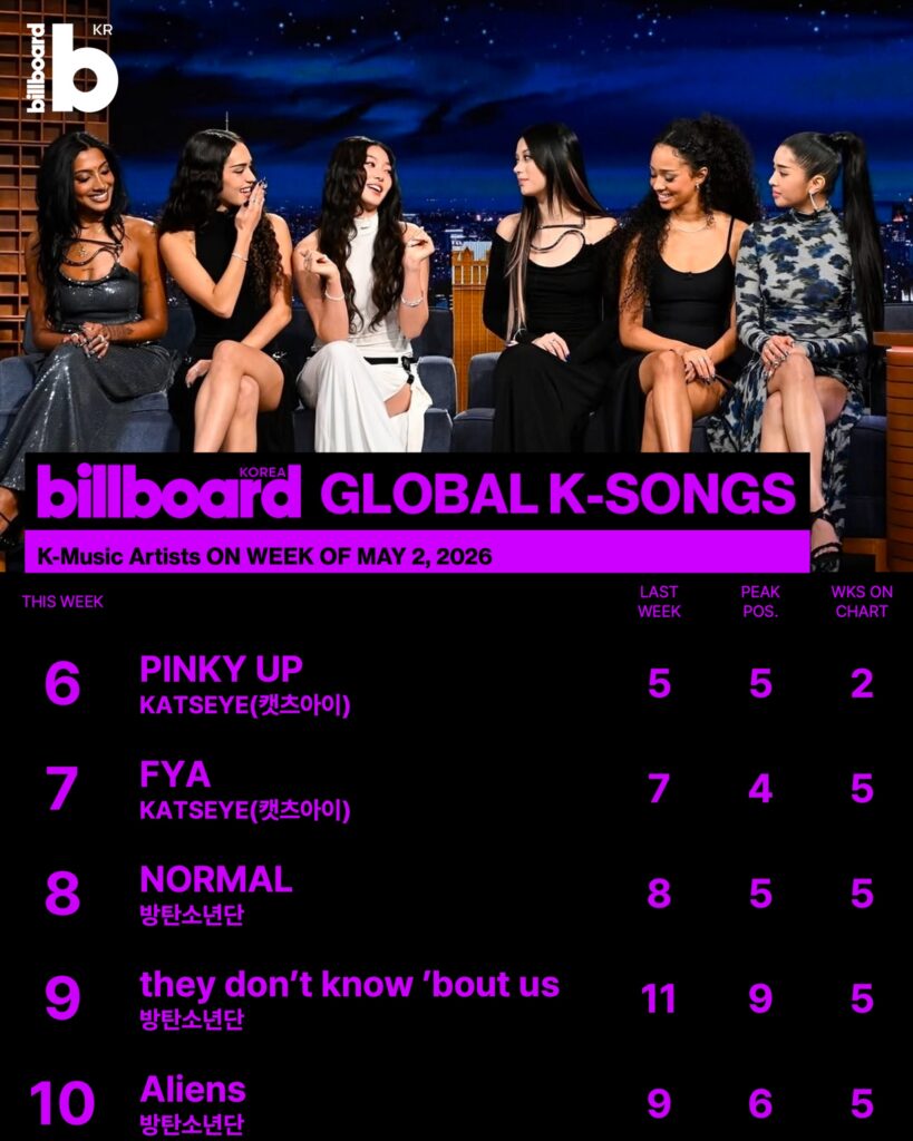 5월 2일 빌보드 차트 내 K-팝 한눈에 보기
