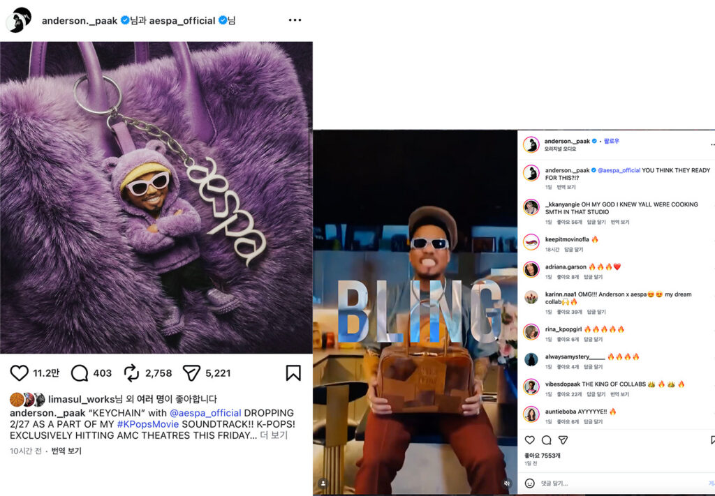 이러한 흐름은 이번 영화 OST에서 더욱 뚜렷하게 이어진다. ‘K-POPS!’에 수록될 에스파와의 협업곡 OST “Keychain”은 에스파의 미래지향적 팝 사운드와 앤더슨 팩 특유의 소울·R&B 감각, 여기에 Dem Jointz의 프로덕션이 더해지며, K-팝과 R&B 소울이 유기적으로 만나는 협업이 될 전망이다. 두 장르가 만들어낼 이 신선한 충돌이, 2월 27일 공개와 함께 어떤 결과물로 귀결될지 기대를 모은다.